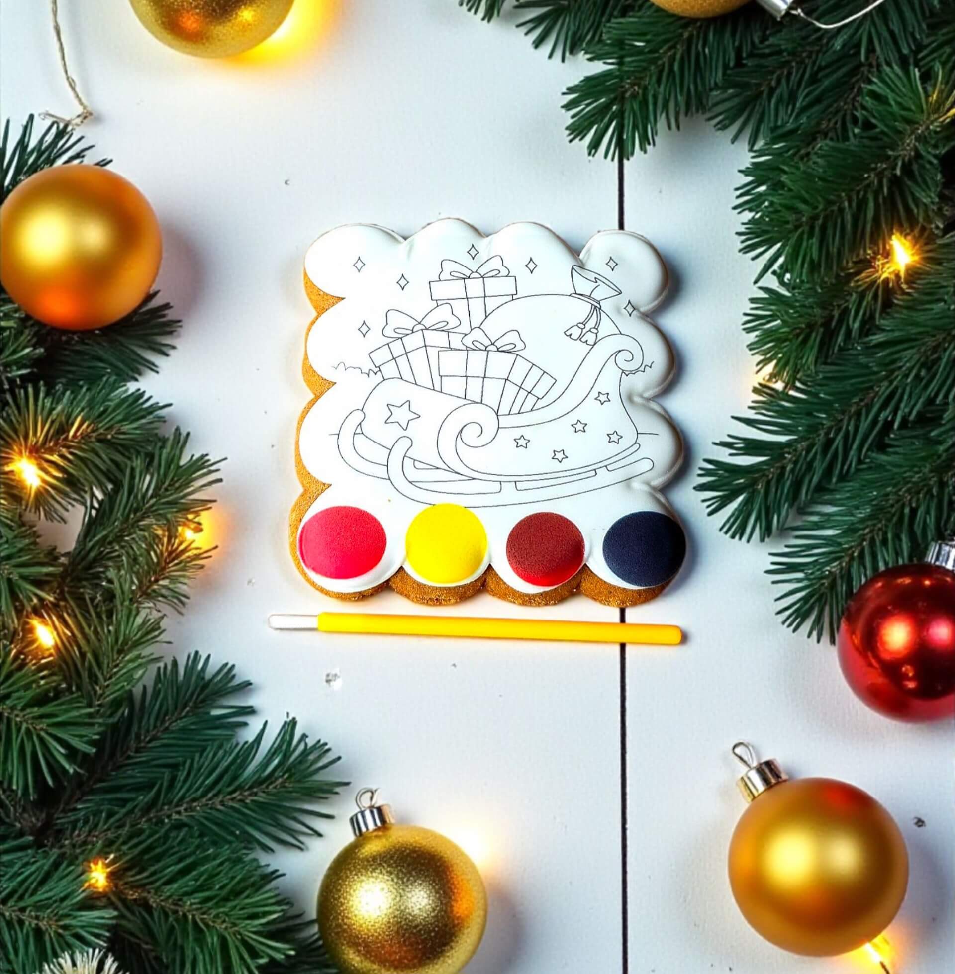 Kalėdinis meduolis spalvinimui – Kalėdų senelio rogės