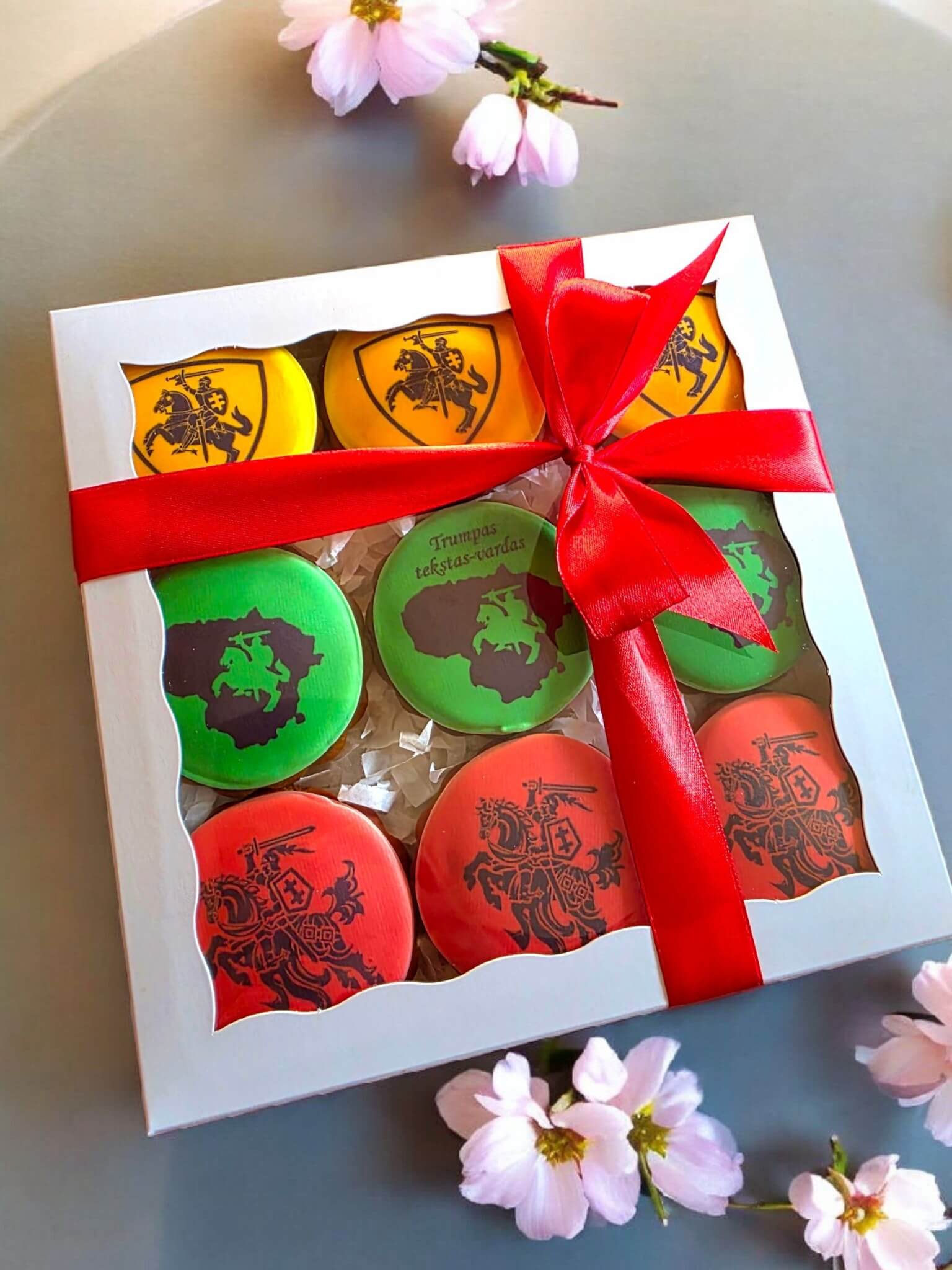Saldi dovana su Lietuvos simbolika, dekoruotų meduolių rinkinys, Lietuvos nepriklausomybės dienos atkūrimo šventei