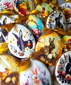 Kiekvienas meduolis yra unikalus, o dizainas parenkamas atsitiktine tvarka iš turimų variantų. Tai puikus pasirinkimas, jei norite malonios staigmenos arba užsakote didesnį kiekį ir leidžiate pavasariui nustebinti.