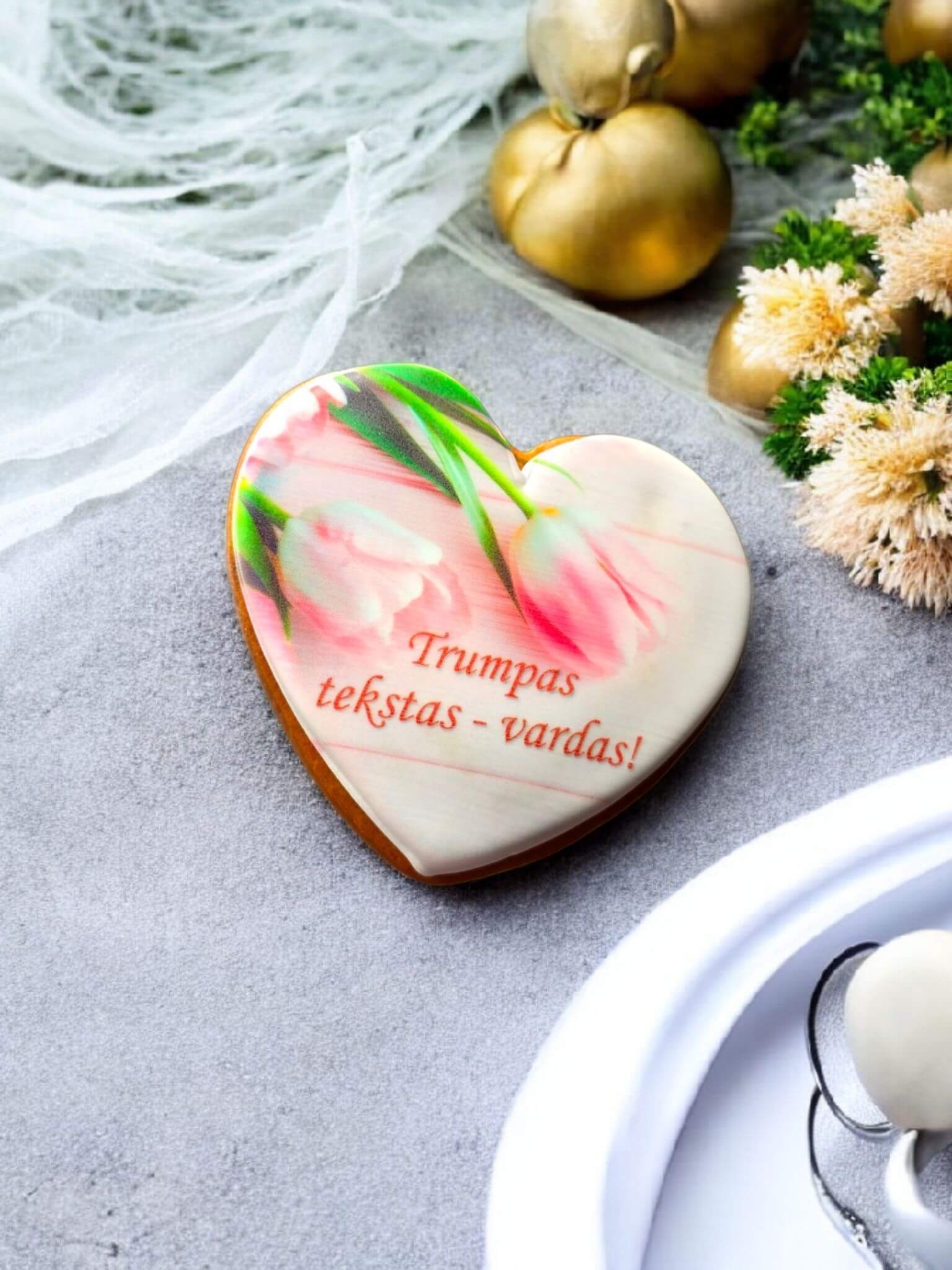 Širdelės formos meduolis su spauda.