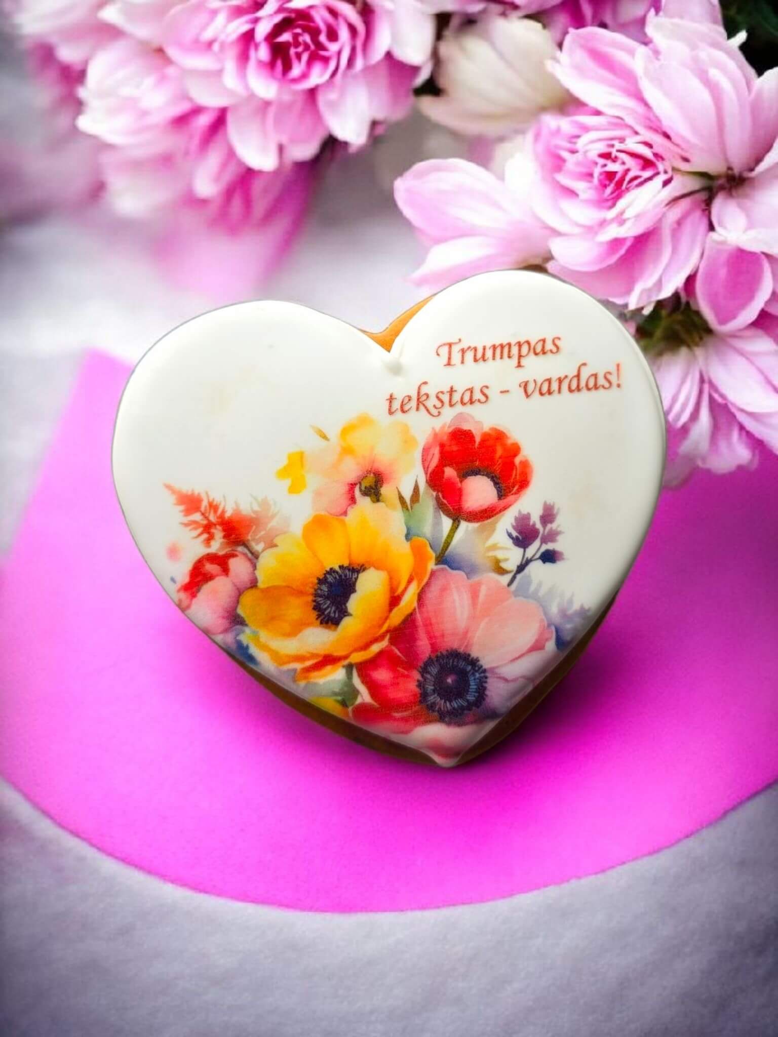 Širdelės formos meduolis su spauda.