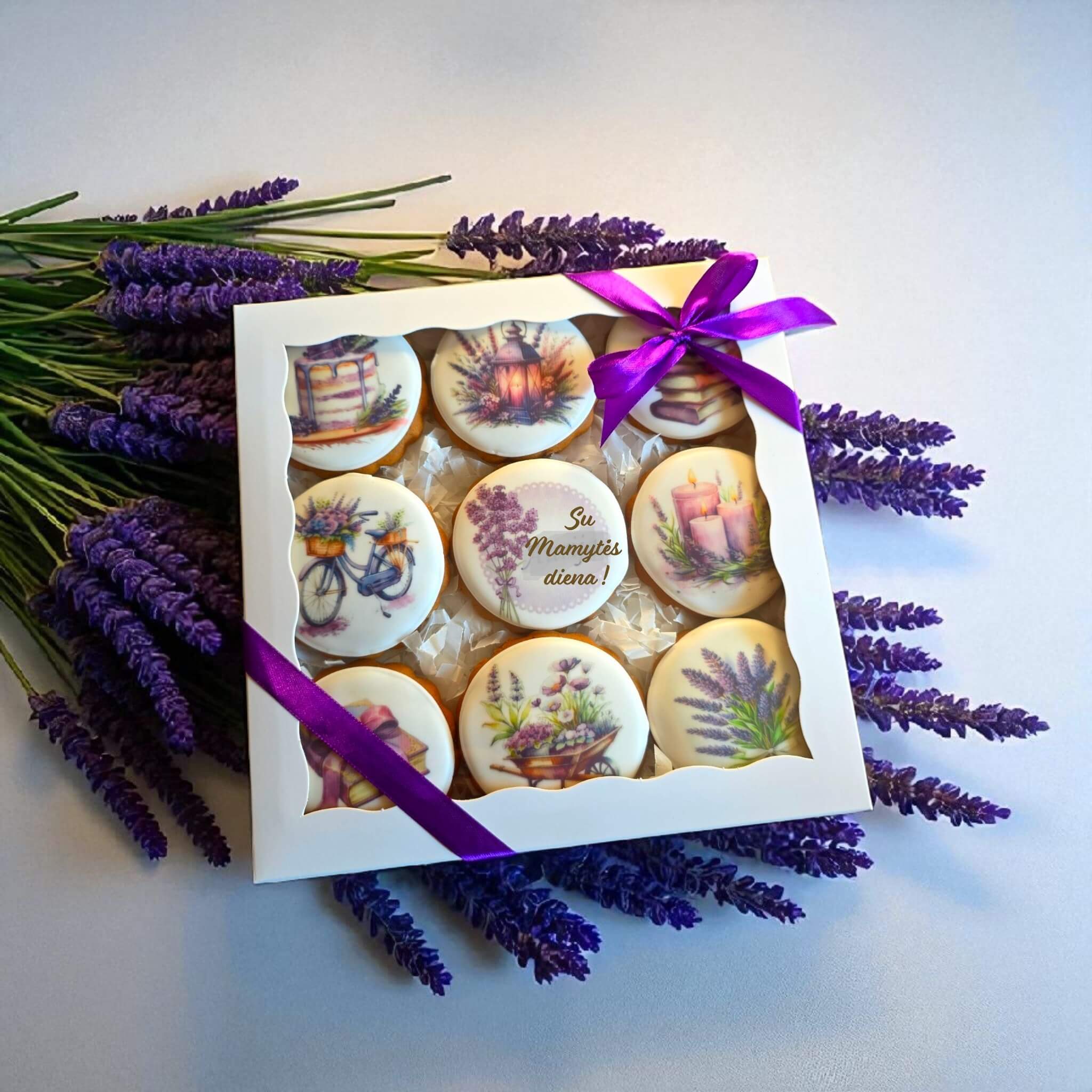 „Su Mamytės diena!“ – tai 9 rankų darbo meduoliai, dekoruoti levandų motyvais ir subtiliomis, jaukiomis iliustracijomis: gėlės, žvakės, dviračiai, šilti namų simboliai. Kiekviena detalė kuria ramybės ir švelnumo nuotaiką.