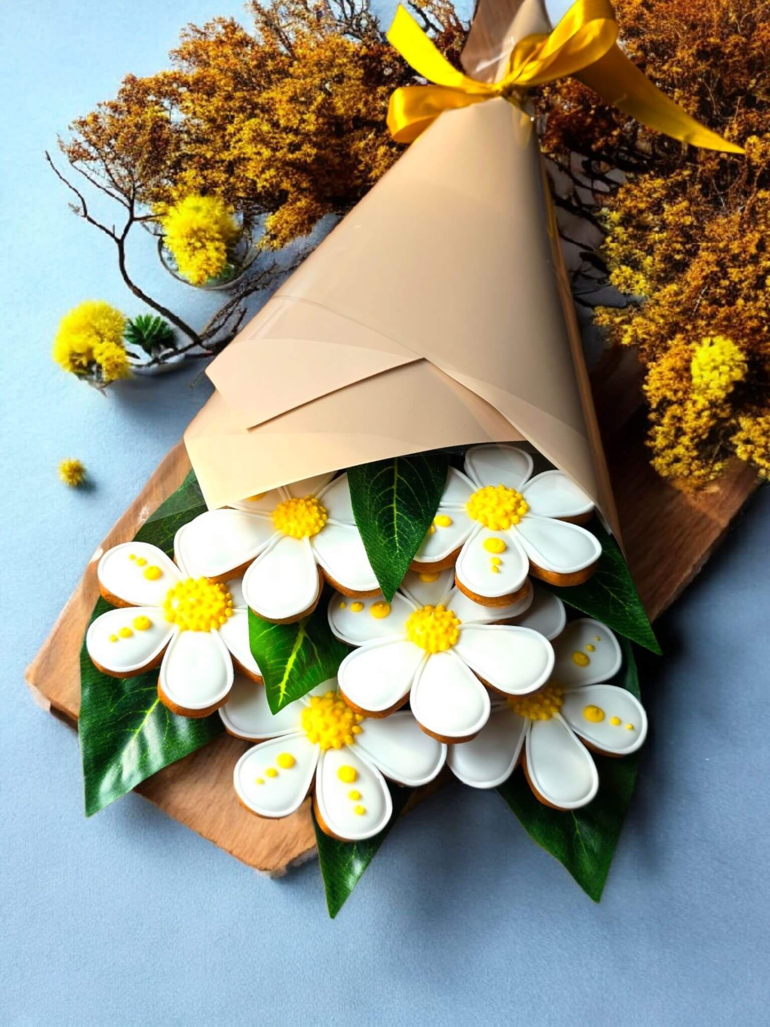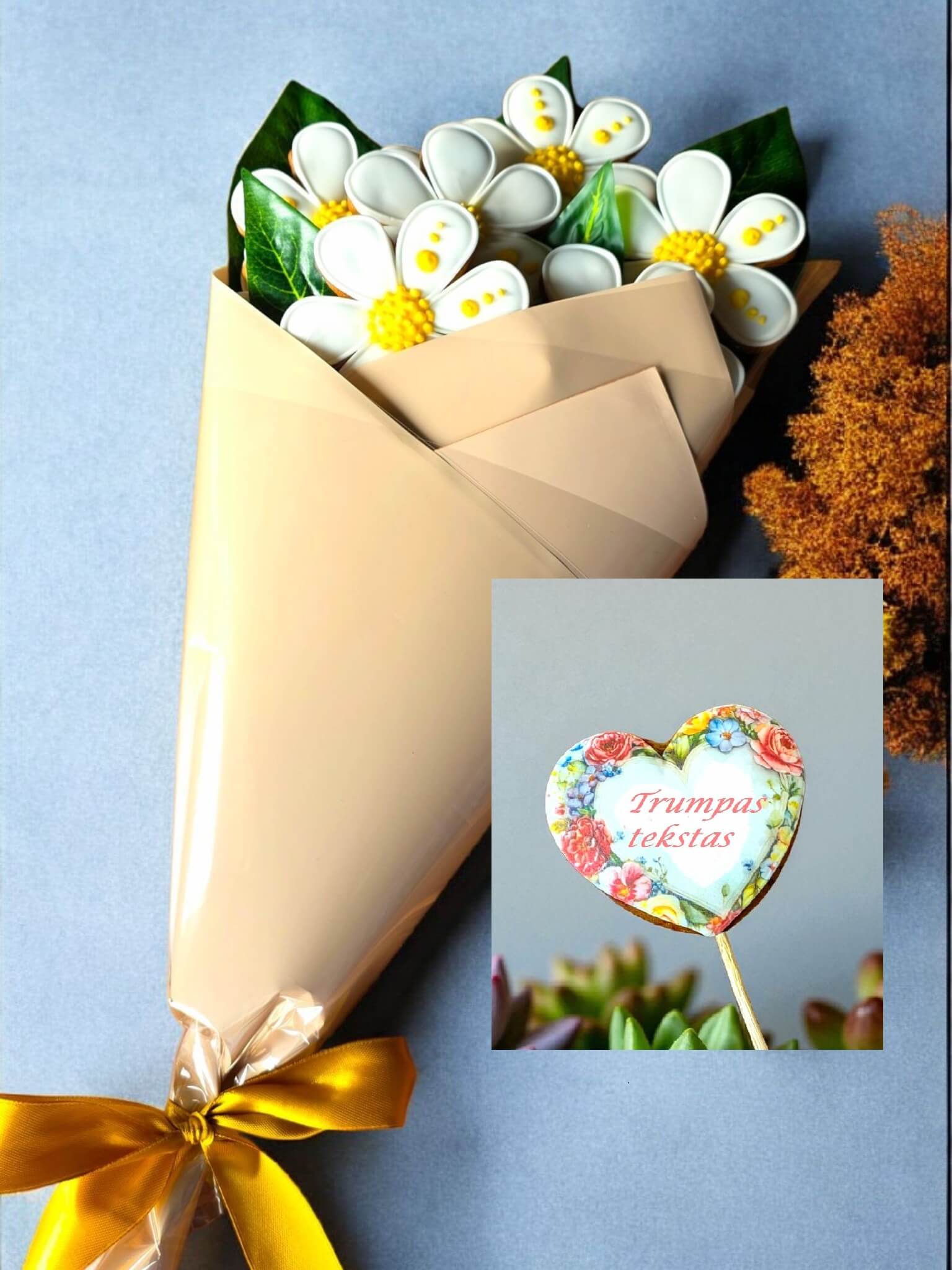 Elegantiška ir išskirtinė valgoma meduolių puokštė, sukurta Mamos dienai – vietoje gėlių, kurios džiugina ne tik akį, bet ir širdį. Švelnių ramunių žiedų kompozicija perteikia rūpestį, šilumą ir nuoširdų dėmesį.