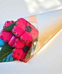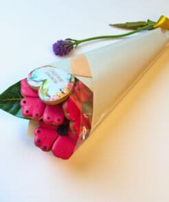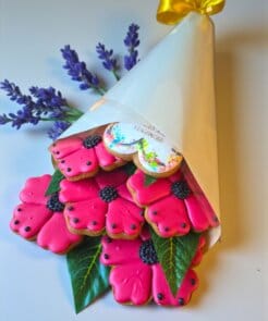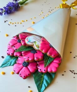 Išraiškinga rožinių žiedų meduolių gėlių puokštė dovanai – tai ne tik saldi dovana, bet ir šiltas emocijų kupinas gestas. Ryškūs, kruopščiai dekoruoti žiedai suformuoti į puokštę, kuri atrodo kaip tikra gėlių kompozicija ir akimirksniu sukuria šventinę nuotaiką.
