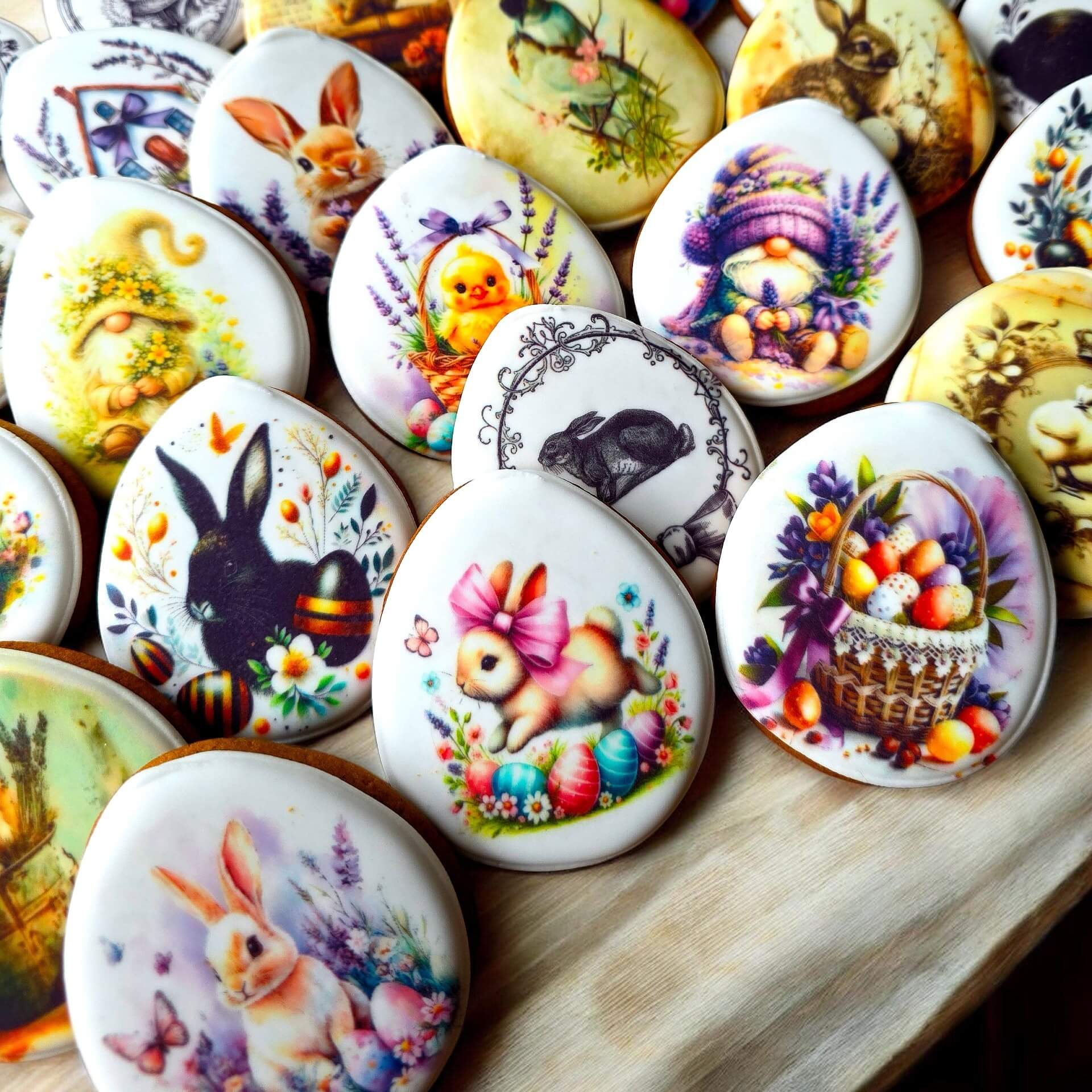 Kiekvienas meduolis yra unikalus, o dizainas parenkamas atsitiktine tvarka iš turimų variantų. Tai puikus pasirinkimas, jei norite malonios staigmenos arba užsakote didesnį kiekį ir leidžiate pavasariui nustebinti.