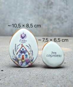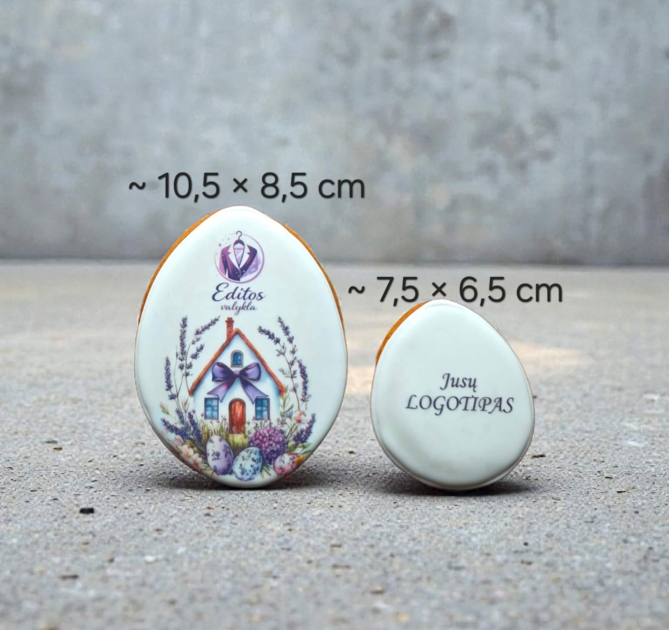 Rankų darbo velykinis meduolis kiaušinio formos, dekoruotas vienu iš įvairių pavasariškų dizainų. Zuikučiai, viščiukai, margučiai ar vintažiniai motyvai – dizainas parenkamas atsitiktine tvarka.
