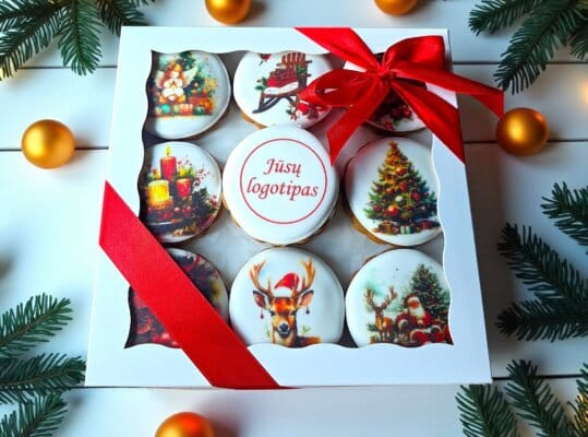 Siūlome rankų darbo kalėdinius meduolius su Jūsų logotipu – tai subtilus būdas padėkoti partneriams, klientams ar darbuotojams. Kiekvienas meduolis pagamintas iš natūralių ingredientų, dekoruotas rankomis ir supakuotas dailiose šventinėse dėžutėse 🎁🍪